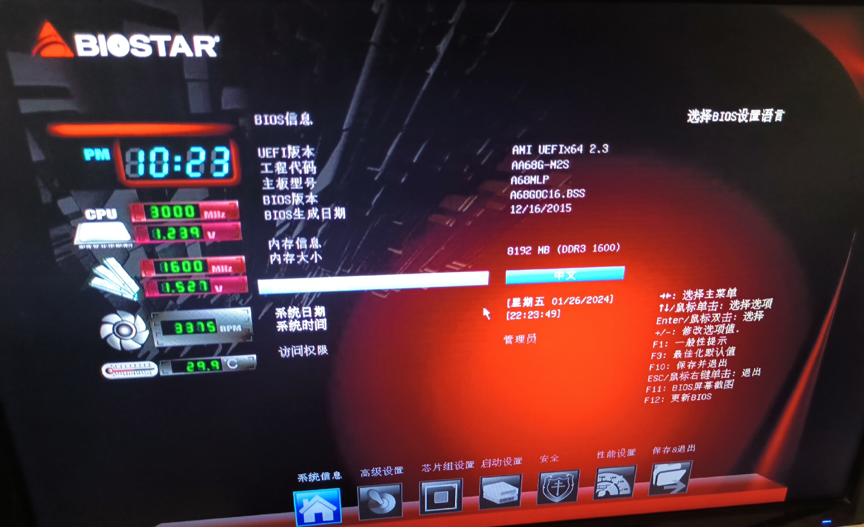 彩色中文BIOS界面!居然还能用鼠标,科技感满满!再也不是原来的蓝天白云了。